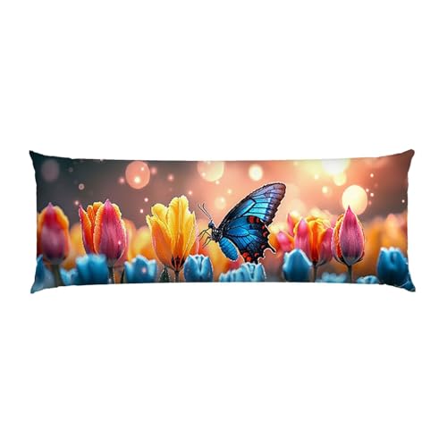Oreiller de Corps 180x60cm Lot de 1 Papillons de Tulipes Taie d'oreiller Velours Coussins, Coussin de Grossesse Dormir Oreiller avec Fermeture éclair Invisible pour Salon Chambre Décor B-751