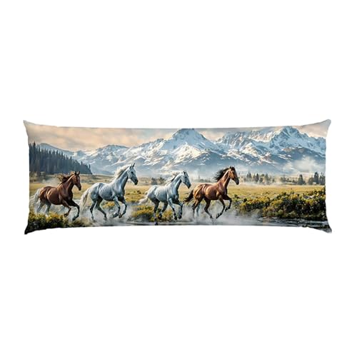 Oreiller de Corps 150x50cm Lot de 1 Cheval de Montagne enneigé Taie d'oreiller Velours Coussins, Coussin de Grossesse Dormir Oreiller avec Fermeture éclair Invisible pour Salon Chambre Décor B-716