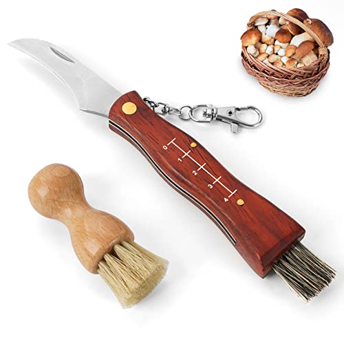 Oramics - Couteau à Champignons Pliable avec Brosse & Règle - Manche en Bois de Qualité - Lame Acier Inoxydable avec Étui Inclu
