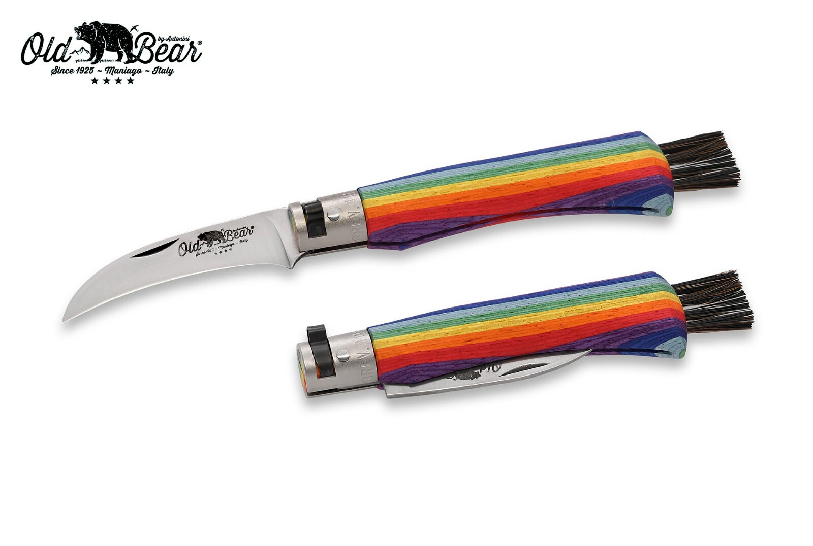Couteau à champignons Old Bear Antonini manche arc-en-ciel fabriqué en Italie