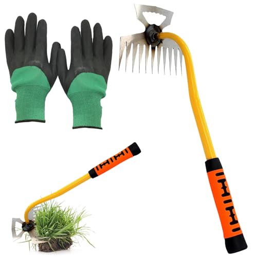 KAHOUI Desherbeur Manuel, Arrache Mauvaise Herbe Poignée en Caoutchouc, Désherbeurs Manuels, Scarificateur Manuel Couteau Désherbeur Root Slayer, avec Gants Respirants Antidérapants