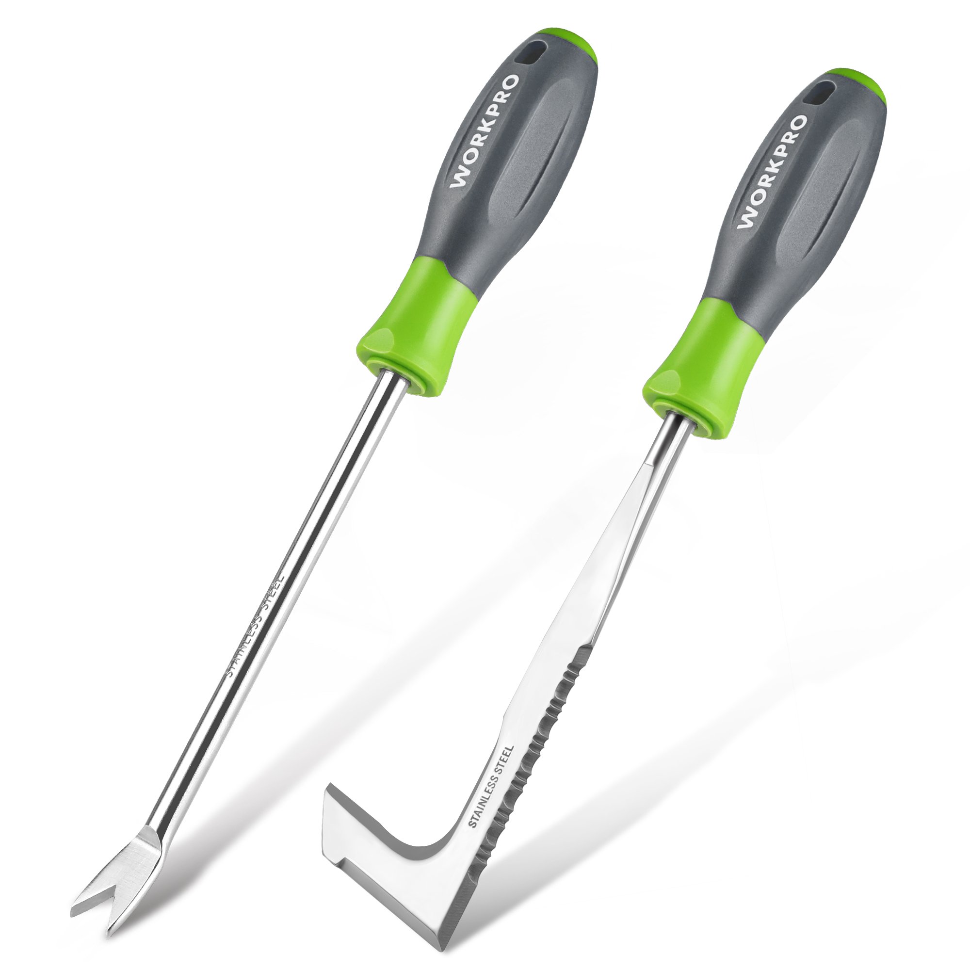 Desherbeur Manuel 2 Pieces WORKPRO, Couteau Desherbeur, Desherbeur Manuel en Acier Inoxydable avec Poignee Plastique, Arrache Mauvaise Herbe, Outil Desherbage pour Jardin