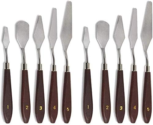 5 Pièces Couteaux à Peindre en Acier Inoxydable Spatule Couteau à Palette Ensemble De Couteaux à Peinture avec Manche en Bois pour l'huile Acrylique sur Toile Painting