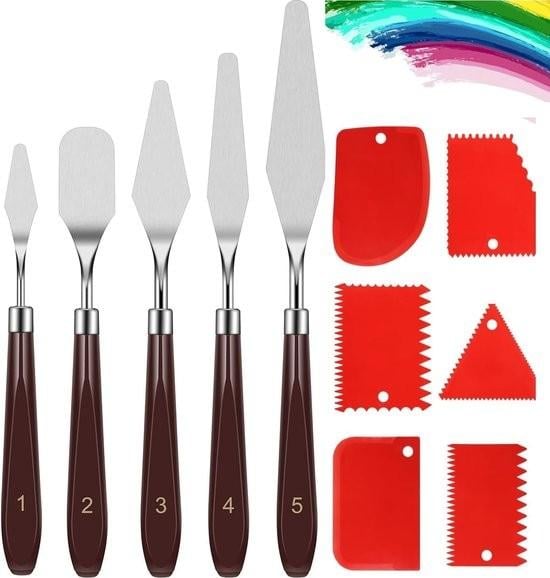 set de 11 spatules pour peinture acrylique, couteau à palette pour pâte structurée, 5 couteaux à peindre avec spatules à 6 dents, couteau à palette en inox pour