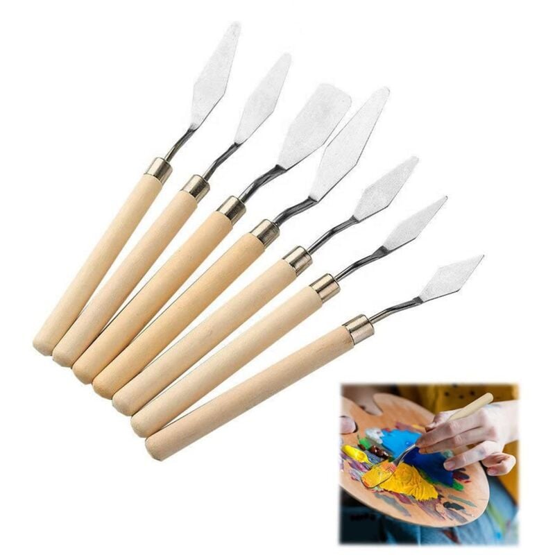 7 Pièces/ensemble Couteau à Peinture Ensemble Couteau à Palette en Acier Inoxydable Outils de Peinture Peinture à L'huile Mélange Grattoir pour Artiste Peinture à L'huile/huile/acrylique/artisanat