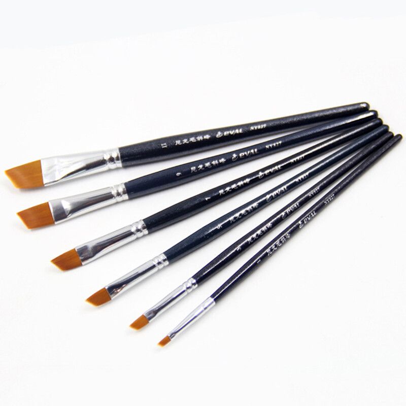 Ensemble de 6 pinceaux à peinture en nylon brun acrylique,couteau oblique en forme de pointe,brosse à huile pour cheveux,tige de bouleau courte,brosse à peinture à la craie,fournitures d'art