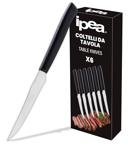 IPEA Couteaux de Table à Steak - Lot de 6 - Couteau Tranchant avec Lame Dentelée en Acier Inoxydable pour Couper la Viande et les Aliments pour le Déjeuner et le Dîner - Couteaux pour Maison Cuisine
