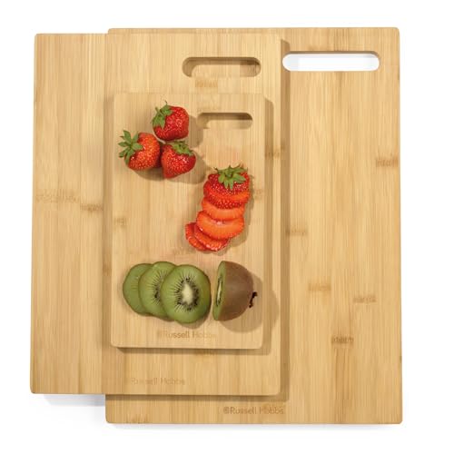 Russell Hobbs Lot de 3 planches à découper en bambou - Certifiées FSC® 25, 36 & 40 cm Planches huilées, résistantes pour préparer et servir, idéales pour découper la viande et couper les légumes