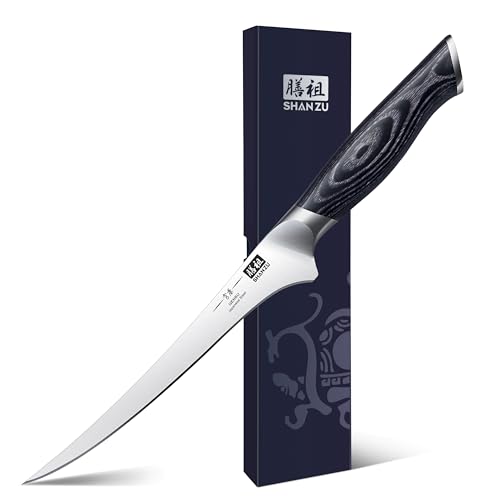 SHAN ZU Couteau à Filet de Poisson Professionnel - Couteau à Désosser Flexible 18 cm en Acier Japonais 10Cr15MoV (62 HRC) - Pour Filetage, Cuisine et Viande, Manche Pakkawood Ergonomique Antidérapant