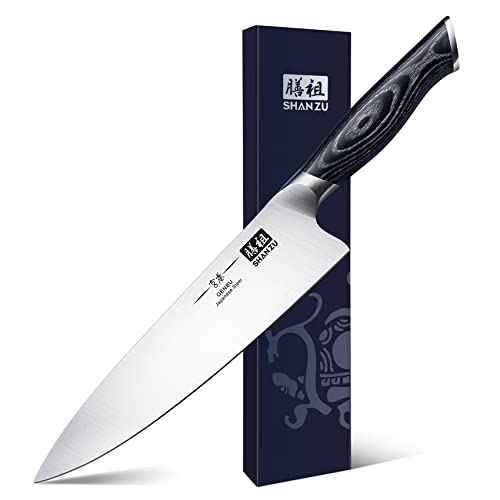 SHAN ZU Couteau de Chef 20cm - Couteau de Cuisine Professionnel Couteau de Chef Professionnel Lame Ultra-fine en Acier Inoxydable Allemand et Poignée en Bois Antidérapante Confortable