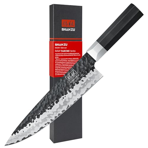 SHAN ZU Couteau de chef japonais, couteau de chef en acier à haute teneur en carbone 9Cr18MoV à 7 couches, couteau Gyuto professionnel super tranchant