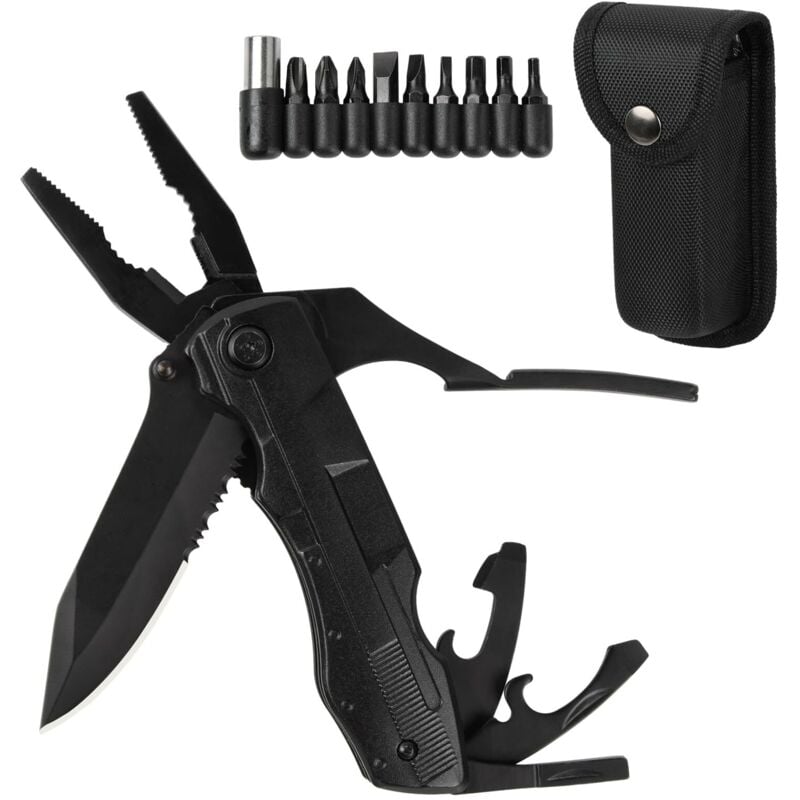 Multifonction, Couteau Pliant Pince 14 en 1, Couteau de Poche Survie en Acier Inoxydable, Outils Multifonction Randonnée avec Étui pour Extérieur