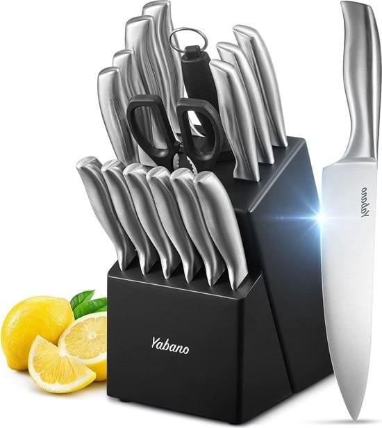 set de 18 couteaux de cuisine professionnels avec bloc en bois et aiguiseur