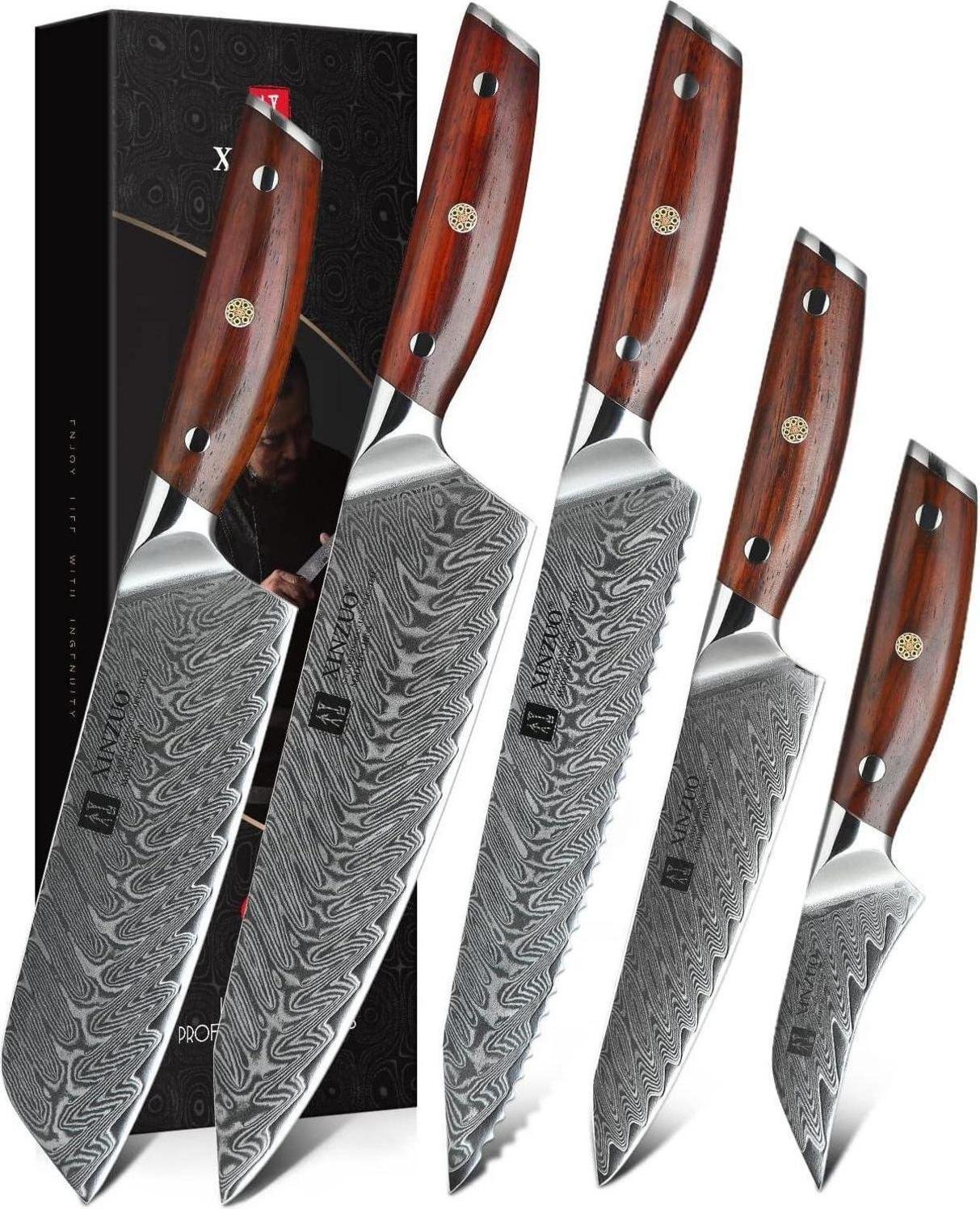 XINZUO Ensemble de 5 couteaux de cuisine en acier damassé Set de couteaux professionnels Tranchant ergonomique - Série Yi