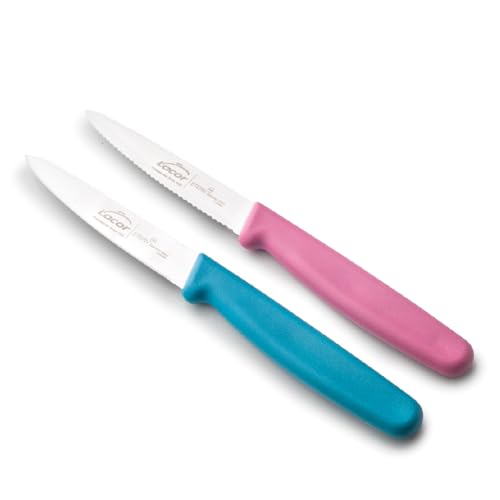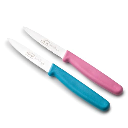 LACOR - 39085 - Couteaux de Cuisine Professionnels, Set Couteau Cuisine, Set 2 Pièces, Couteau d’Office, Dentelle Lisse et Dentelée, Acier Inoxydable, Série Etern, Lame de 10 cm, Bleu et Magenta