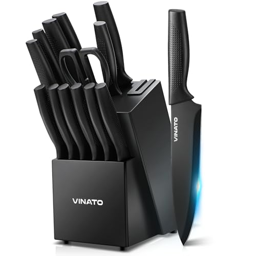 VINATO Couteau Cuisine, Couteau de Cuisine 14 Pièces avec Aiguiseur, Set de Couteaux de Cuisine Professionnels, Couteaux de Cuisine en Acier Inoxydable Tranchants avec Manche en Plastique
