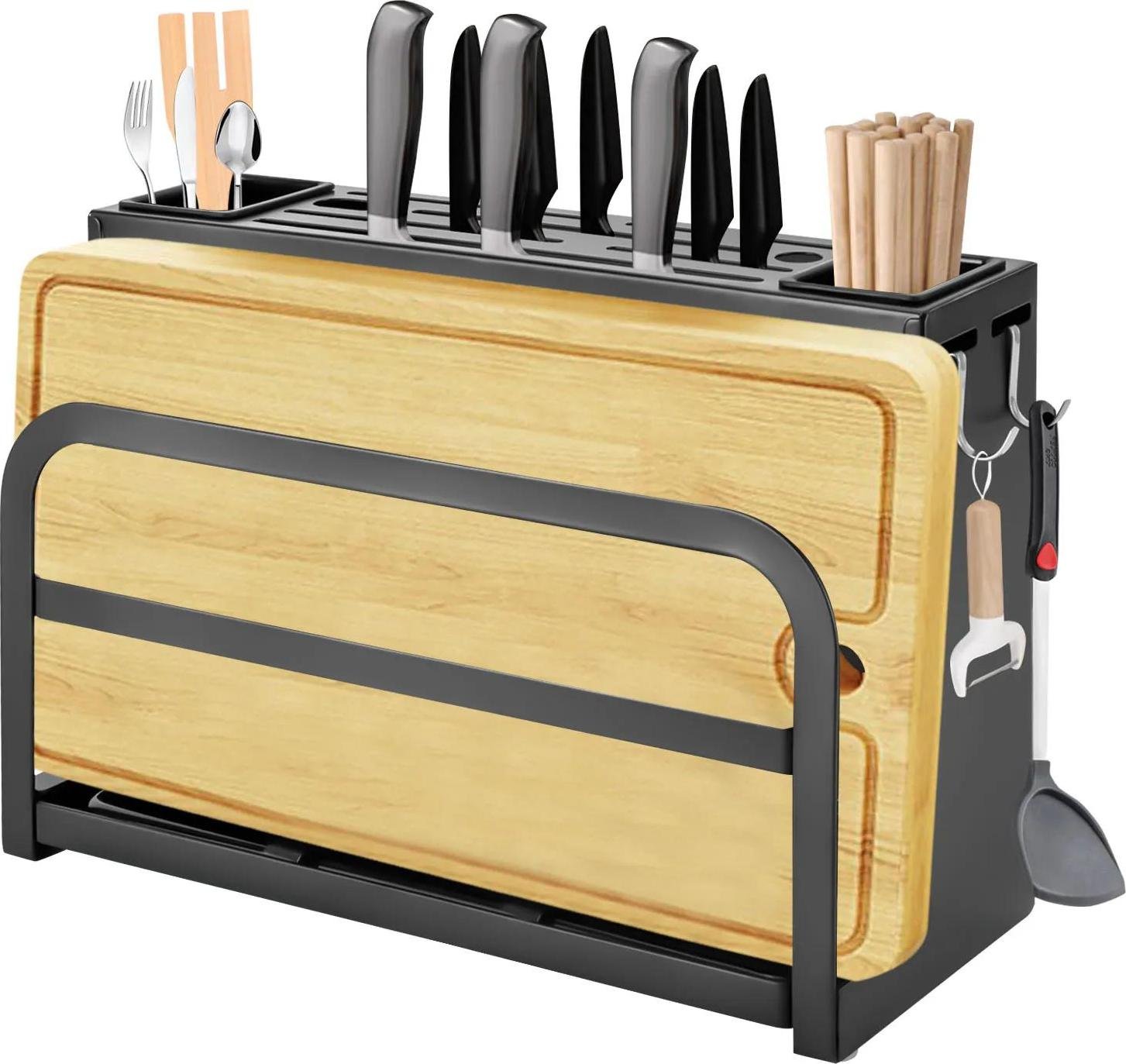 Bloc à couteaux - Porte-couteaux - Acier inoxydable - Multifonction - Peinture cuite au four - Résistant à la corrosion - Durable - Noir