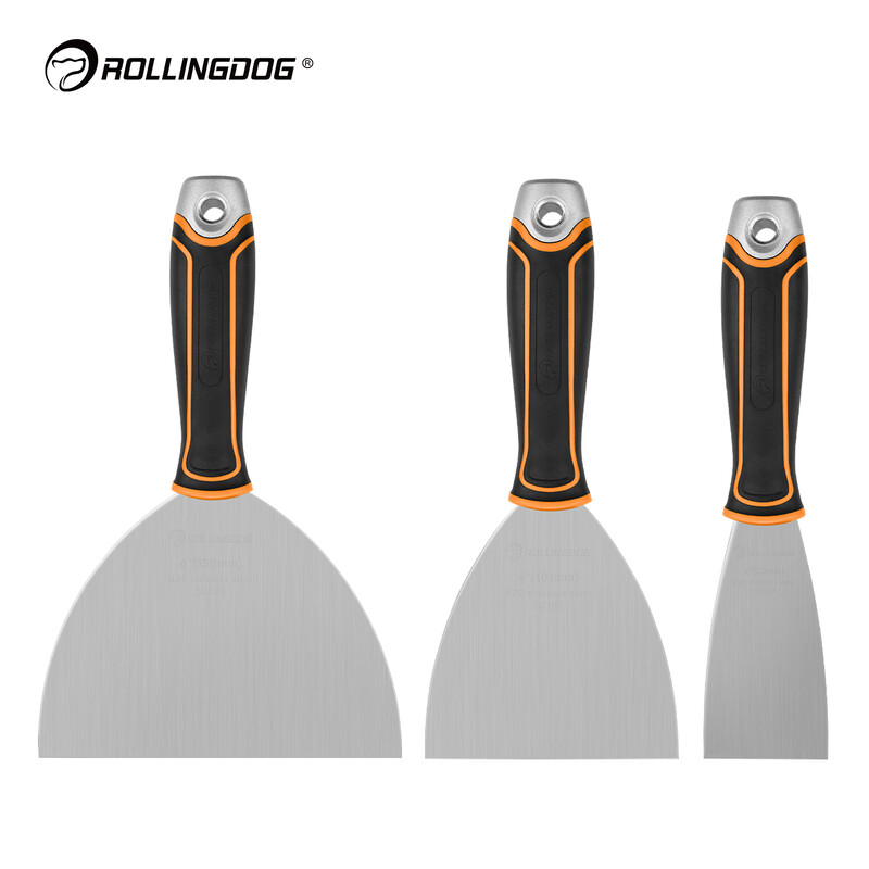 ROLLINGDOG Jeu de 3 couteaux à mastic en acier inoxydable, jeu de grattoirs pour plâtre, réparation de murs, préparation de surfaces, peinture, construction, outil professionnel, durable et résistant à la rouille