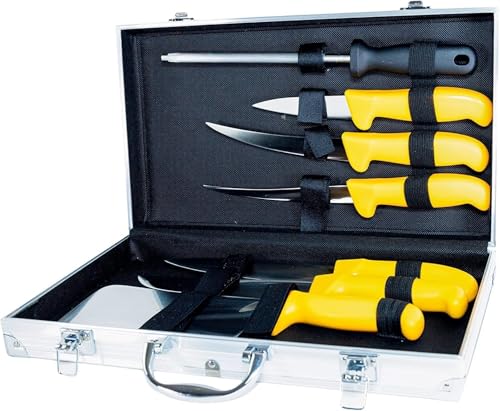 Pradel Excellence - PCOT005009 - Mallette Couteaux de Boucher 8 Pièces - Lames Inox - Manches Polypropylène Jaune - Compatibles Lave-Vaisselle - Mallette de Rangement - 1,83 kg