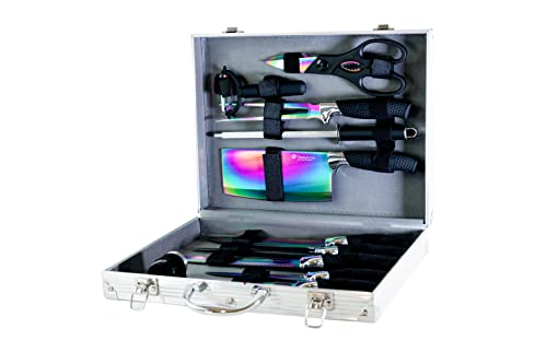 Pradel Excellence - I7100 - Sac Couteaux Professionnels 9 Pièces - Lames Inox - Manches Inox - Compatibles Lave-Vaisselle - Sac Rangement Ultra-Résistant - Style Unique - 2050 g