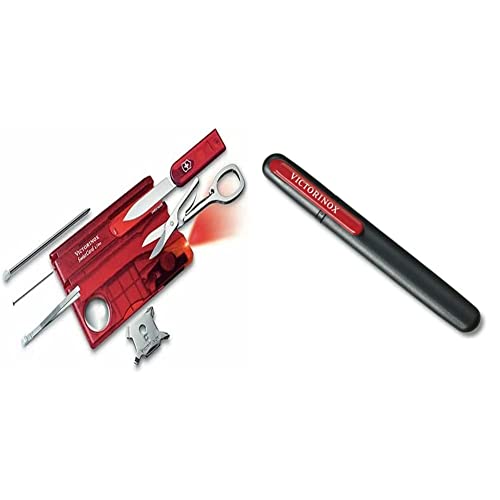 Victorinox Swiss Card Lite, Multitool de Poche Suisse, 13 Fonctions, Led, Loupe, Rouge Transparent & Aiguisoir Double pour Couteaux, Swiss Made, Portable, Noir/Rouge