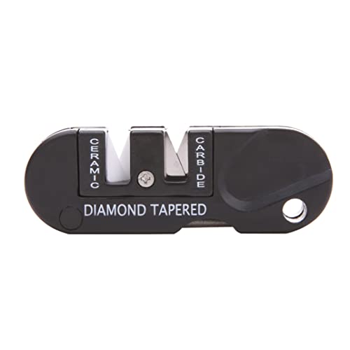 Hperu Ajusteur de Couteaux de Poche Affûteur de Couteau Portable Mini Pocket Keychain Ajusteur Ajusteur Pliable Outil d'aiguise pour la Survie pour la Chasse à la pêche en randonnée Camping Noir 1pc