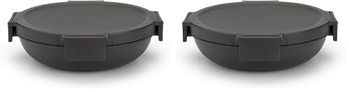Brabantia - Boîte Ronde Make & Take 1L - Design Compact & Plat - Couvercle à Clips - Étanche - Fermeture Hermétique - Convient pour le Congélateur, le Lave-Vaisselle & le Micro-Ondes - Dark Grey