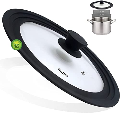 Walfos Couvercle Universel, Couvercle de Casserole avec Rebord en Silicone Résistant à la Chaleur,Convient Les 28/30/32cm Ustensiles de Cuisine, Casseroles, Poêles et Poêles de