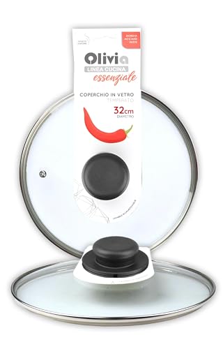IPEA Couvercle pour Poêle ou Casserole en Verre Trempé – 16/18 / 20/22 / 24/26 / 28/30 cm – Transparent Rond Universel avec Bouton pour Poêles et Casseroles Cuisine - Lave-Vaisselle- 32 cm