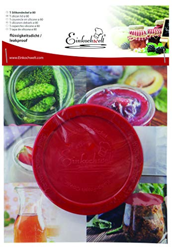 Einkochwelt 22510 Couvercle en silicone de 80 mm – Couvercle de rangement en silicone de qualité supérieure – Convient pour les verres à bord rond Weck – Pour le stockage des stocks cassés – Rouge