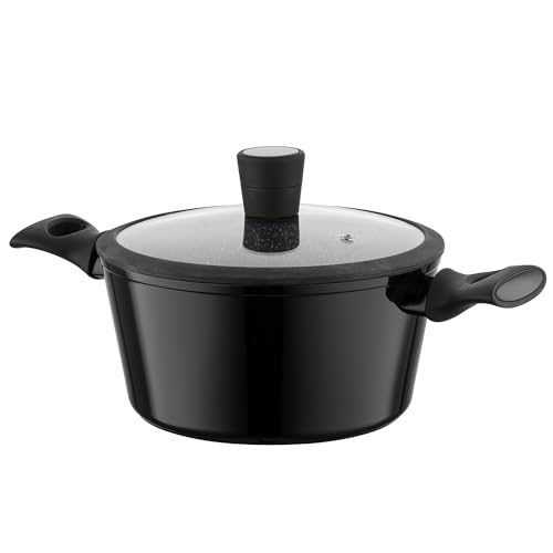 FLORINA Faitout Aluminium (2,6 l) I Diamètre de 20 cm I Marmite avec Couvercle en Verre Silicone MAGNUM I Poignées Softtouch I Faitout pour Induction, Marmite tous Feux I Revêtement Antiadhésif