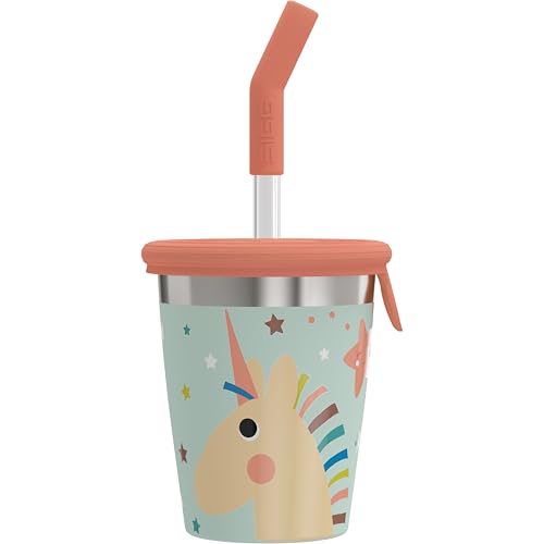 Sigg - Gobelet pour enfant en acier inoxydable avec couvercle en silicone et paille - Anti-éclaboussures - Sans BPA - Léger et robuste - Licorne - 0,35 l