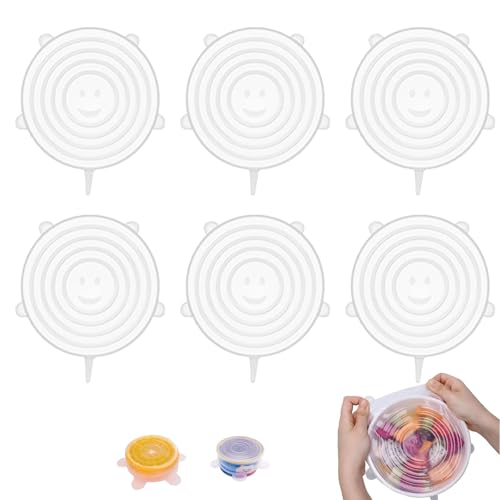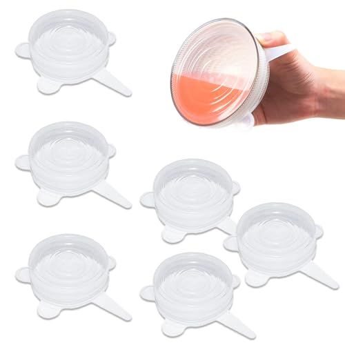 Couvercles en Silicone, 6 Pièces Couvercles en Silicone Extensibles, 6,5cm/2,5in Couvercle Alimentaire, Couvercle en Extensible pour Boîtes, Fruits, Bols, Gobelets, Transparent