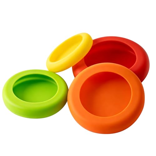 KOMUNJ Lot de 4 couvercles en silicone extensibles, différents couvercles extensibles en silicone, couvercle en silicone, offre une protection fraîche, pour aliments, tasses, boîtes, fruits