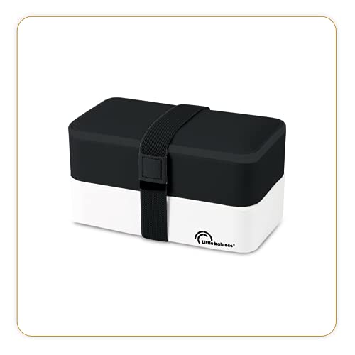 Little Balance 8452 Lunch Box 2 étages, 3 couverts inclus, Boîte Repas écologique, sans BPA, Totalement hermétique, 1200 ml, Blanc/Noir