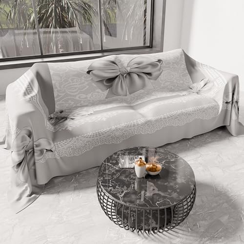 PETTI Artigiani Italiani - Drap de Protection en Microfibre Multi-Usage Anti-Taches 220x270 cm, Housse de Canapé, Couvre Lit, Couverture de Canape, Nœud Gris, 100% Made in Italy