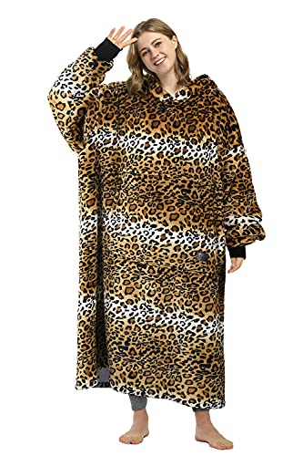 Kato Tirrinia Couverture à capuche, sweat-shirt Sherpa surdimensionné, couverture portable chaude super douce, pull à poche géant confortable à capuche géant adultes hommes femmes, Guépard