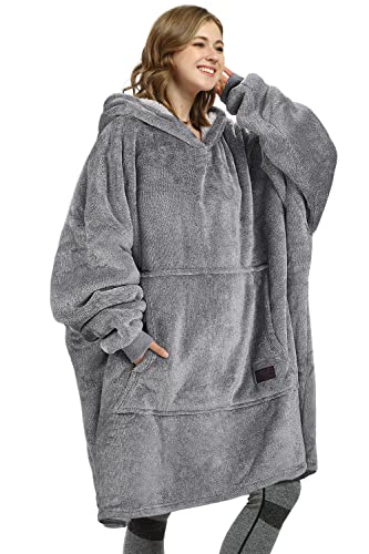 Kato Tirrinia Couverture à capuche, sweat-shirt Sherpa surdimensionné, couverture portable chaude super douce, pull à poche géant confortable à capuche géant adultes hommes femmes, Gris gris