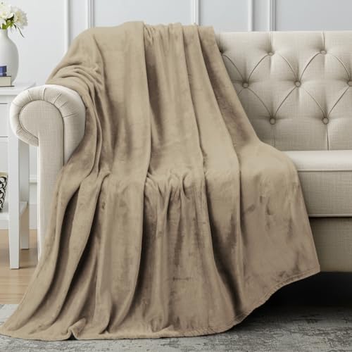 TASTHROW Flanelle Couverture Polaire, Moelleuse Couverture Polaire Epaisse, Jeté de Canapé Couverture Chaude et Douce en Peluche Plaid Polaire (Café léger, 130x180cm)