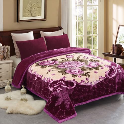 JML Couverture Polaire Lourde en Vison coréen pour très Grand lit, 216,7 x 241,3 cm, 4,1 kg, épaisseur Simple, Douce et Chaude, Couverture épaisse en Vison imprimé Raschel pour Automne, Hiver, lit,