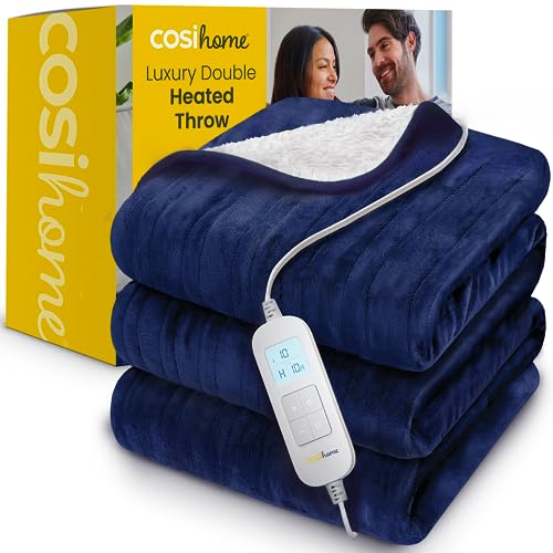 Cosi Home Couverture Chauffante Electrique 2-en-1 – Plaid Chauffant Extra-Large 180x130cm avec Télécommande Numérique, Lavable en Machine, Minuterie et 10 Réglages de Chaleur - Bleu Marine