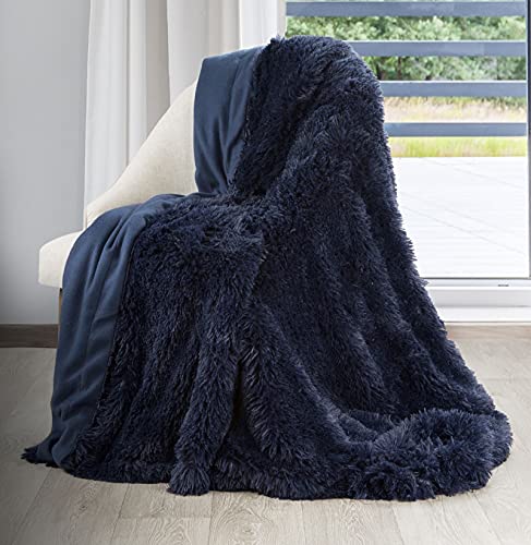Good Nite Plaid Douillet, 130 x 150 cm, Couverture Polaire, Couverture Sherpa, jeté de canapé, Chaude et Douce pour l'hiver (Bleu Marine, 130 x 150 cm)