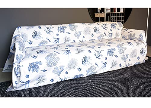 BIANCHERIAWEB Toile d'ameublement Granfoulard 180 x 280 cm, Drap Housse 100% Coton, Made in Italy, Couverture de canapé ou Couvre-lit 1 Place, Fantaisie Corail Bleu