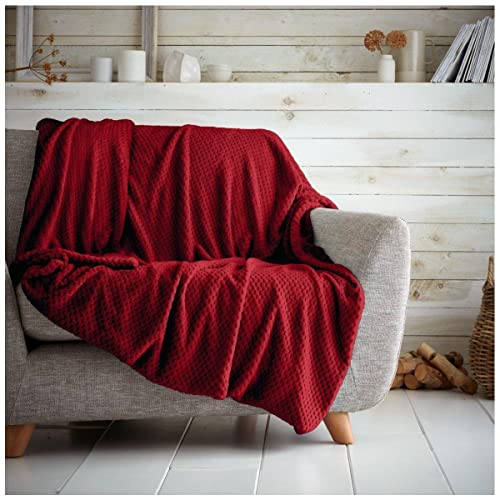 GC GAVENO CAVAILIA Couverture de canapé-lit en nid d'abeille de qualité supérieure, Facile d'entretien, Super Douce et Chaude, Moelleuse, Rouge, 150 x 200 cm