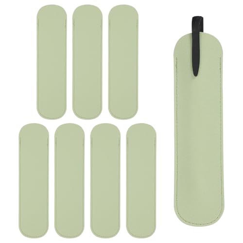 PATIKIL 7 inch Étui À Stylo, 8Pcs Pochette À Stylo en Cuir PU Pochette À Plume Unique Couverture Protectrice Porte-Stylo pour Bureau Stylos À Bille Crayons Tactiles, Vert Clair