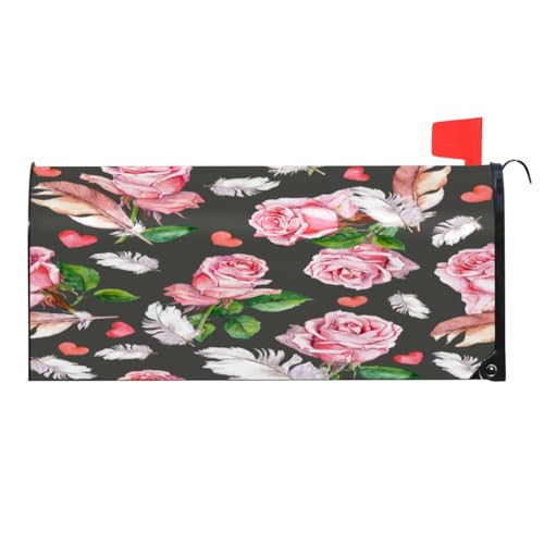 Couverture de boîte aux lettres magnétique en forme de cœur en forme de plume de rose, imperméable, pour boîte aux lettres, décoration de jardin, de maison, pour l'extérieur, grande taille 25,5" L x 2