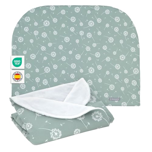 Medi Partners Couverture bébé avec Oreiller 100% Coton Minky Couverture Enfant 55x75 + 35x30cm Multifonctionnel pour Poussette siège bébé Berceau (Océan à la Menthe Minky)
