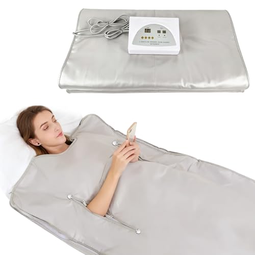VANELL Couverture de sauna avec chauffage numérique infrarouge lointain, contrôleur à 2 zones avec 50 feuilles en plastique, pour réduire le poids du corps mince, beauté de la maison (argent)