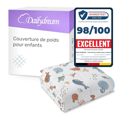 Dailydream Couverture Lestée Enfant | thérapeutique | 104x150 cm | 3,2 kg | Motif Ocean | 100% Coton | avec Perles de Verre | Couette pondérée | apaisante et relaxante | Poids corporel 25-55 kg
