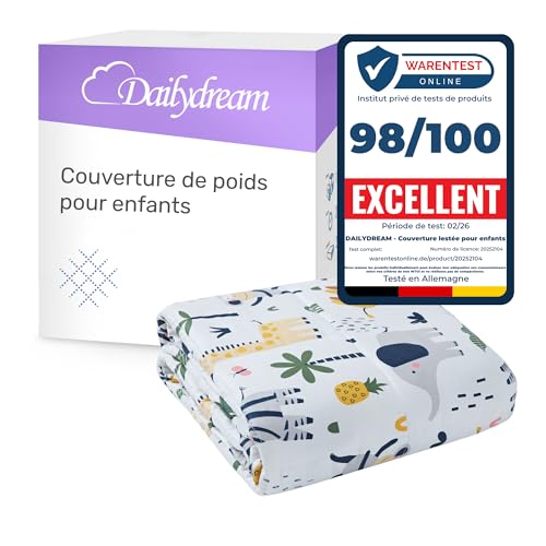 Dailydream Couverture Lestée Enfant | thérapeutique | 104x150 cm | 3,2 kg | Motif Safari | 100% Coton | avec Perles de Verre | Couette pondérée | apaisante et relaxante | Poids corporel 35-55 kg
